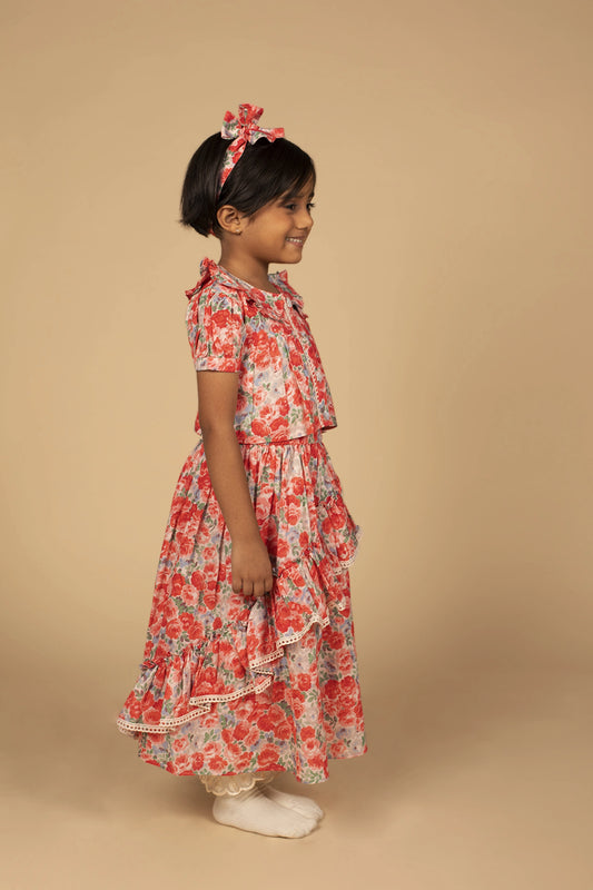Red Printed Embroidered Layered Top And Flared LehengaRegular price From Rs. 3,300.00Regular priceUnit price / per-