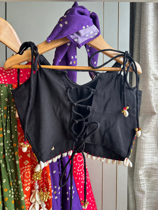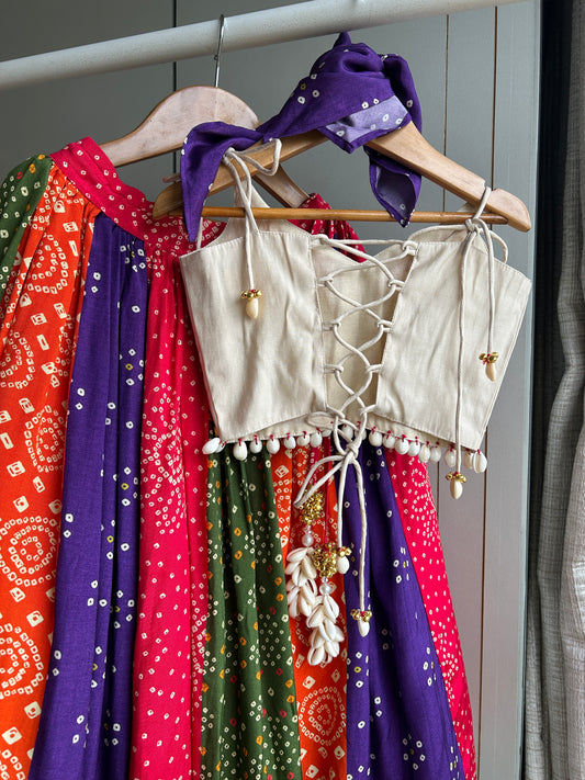 Ghungur Faux Mirror And Thread Embroidered Top And Flared Lehenga