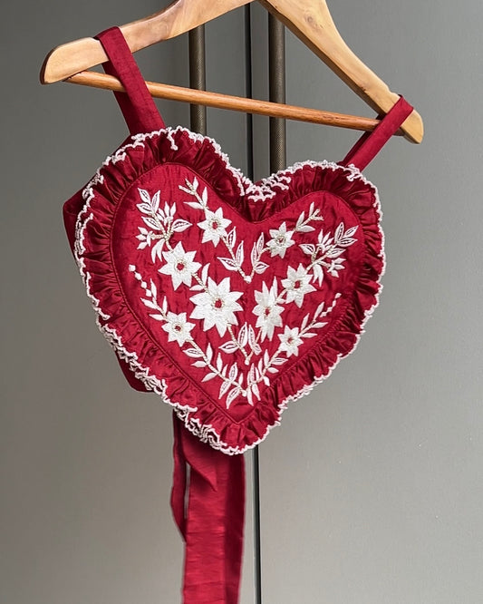 Red Embroidered Heart Shaped Stylish Top And Lehenga