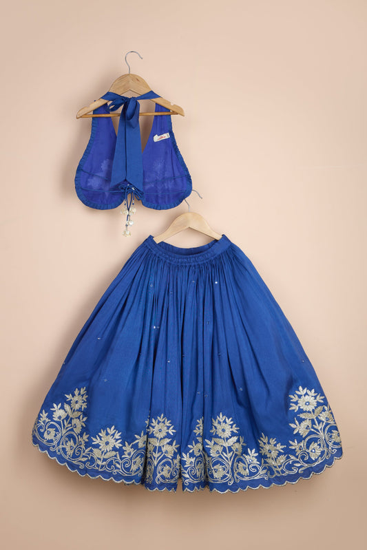 Chandrima blue embroidered halter neck blouse and lehenga set