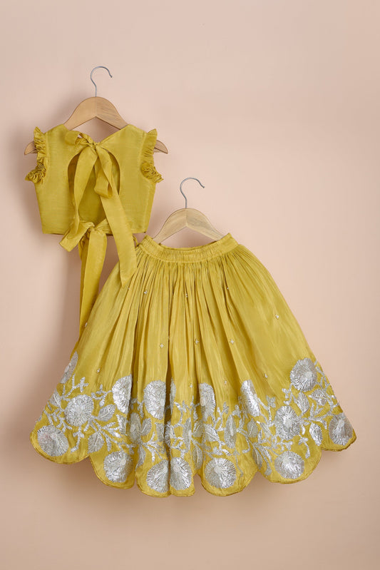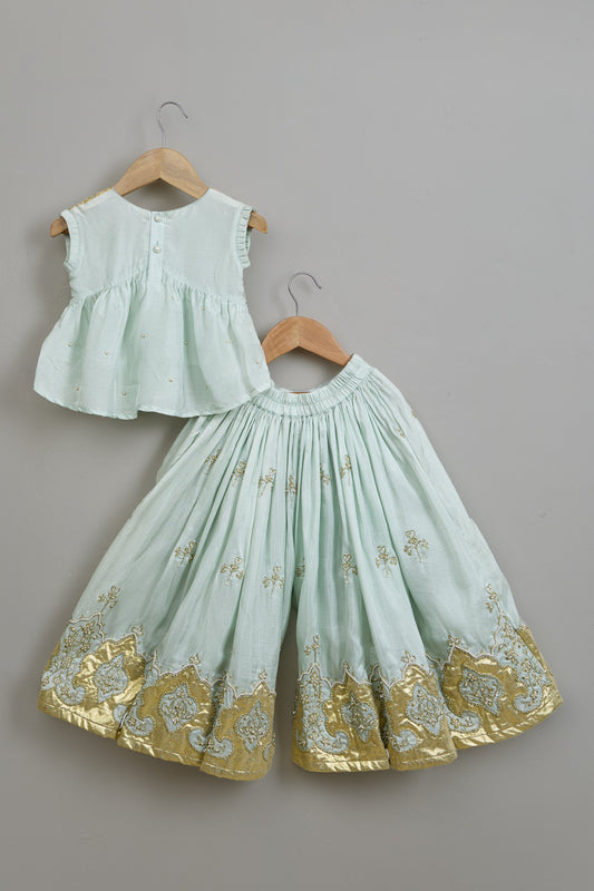 Bagiya Powder Blue Silk Frilled Lehenga Set For Girls