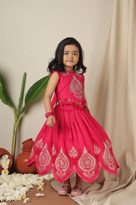 Gulika Fuchsia Embroidered Lehenga Set For Girls