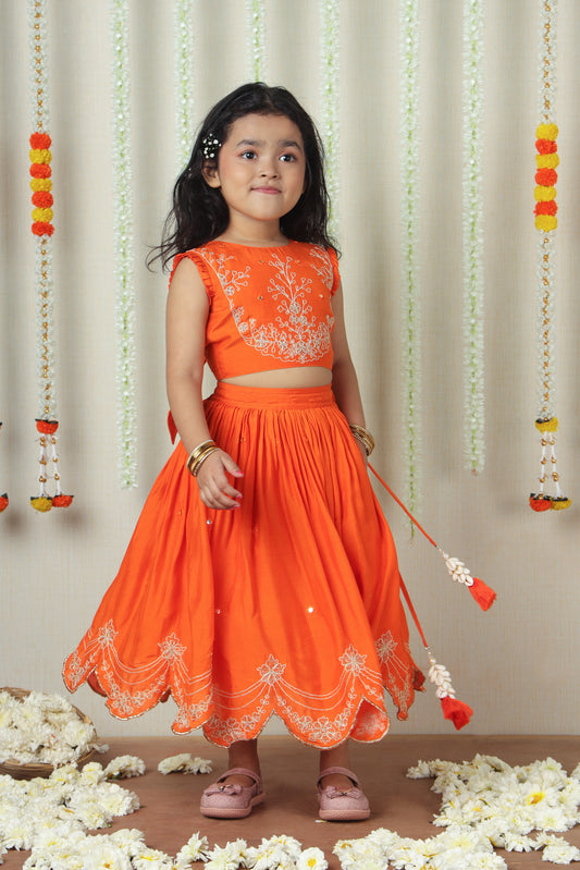 Orange Double Tie-up Embroidered Lehenga Choli