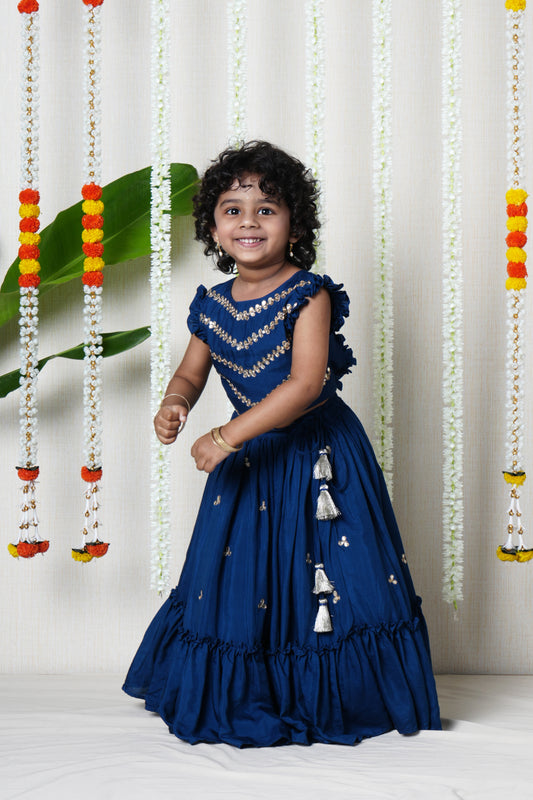Blue Gota Lace Embroidered Lehenga Choli Set