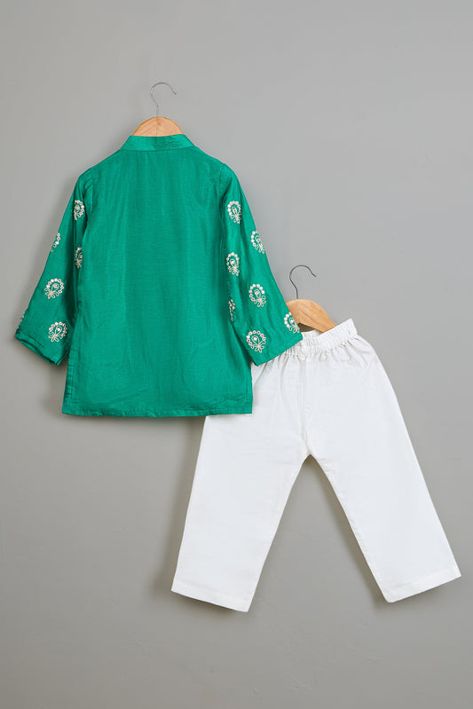 Faux Mirror Embroidered Blue Kurta With Pyjama