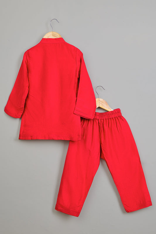Red Embroidered And Pintuck Detailed Kurta With Pyjama