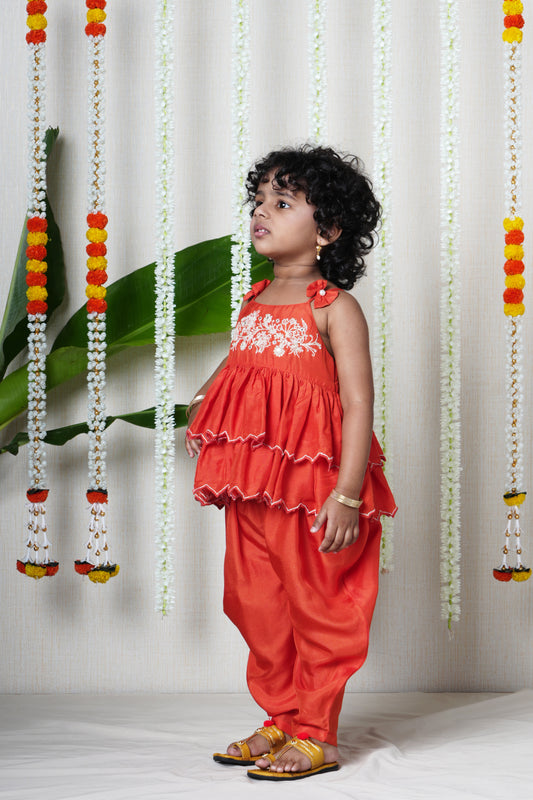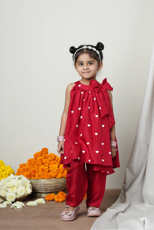 Red Embroidered Heart Shaped Stylish Top And Lehenga