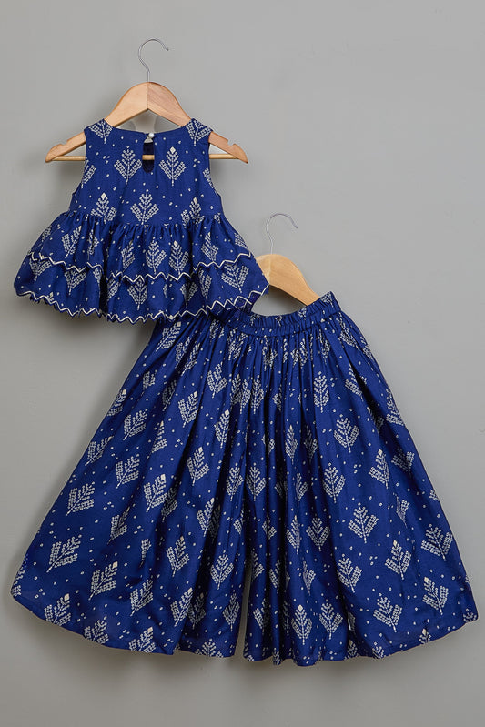 Blue Printed Embroidered Layered Top And Flared Palazzo