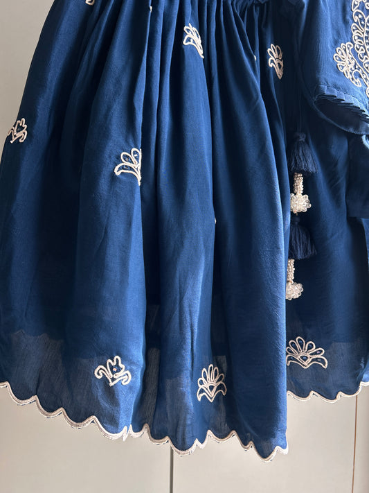 Blue Gota Detailed Peplum Top With Flared Palazzo And Dupatta