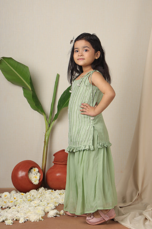 Mukta Embroidered Tie Up Straps Kurti And Flared Palazzo