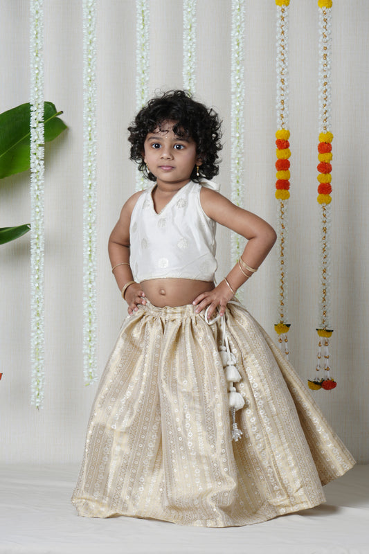 Nelumbo Dori Embroidered Top And Fringe Tassel Enhanced Lehenga