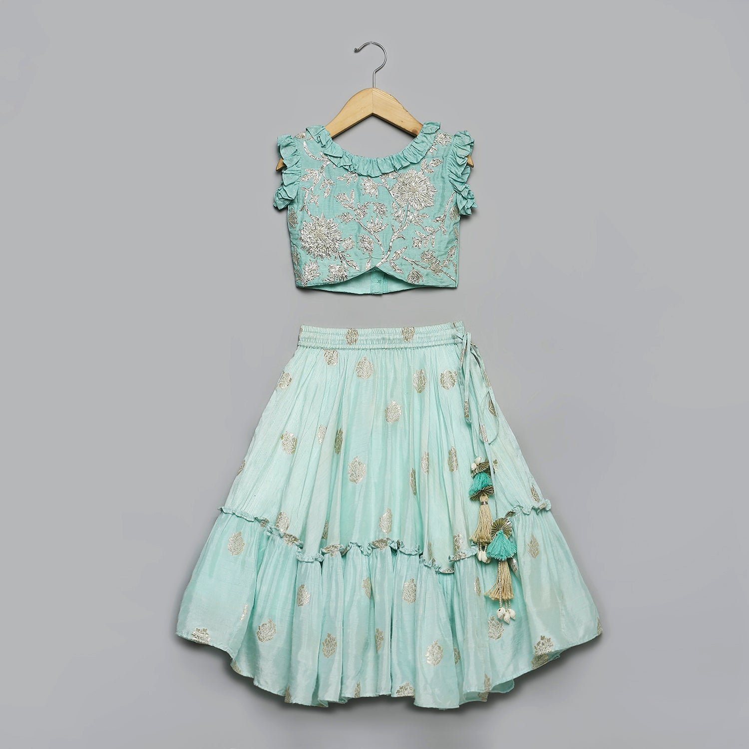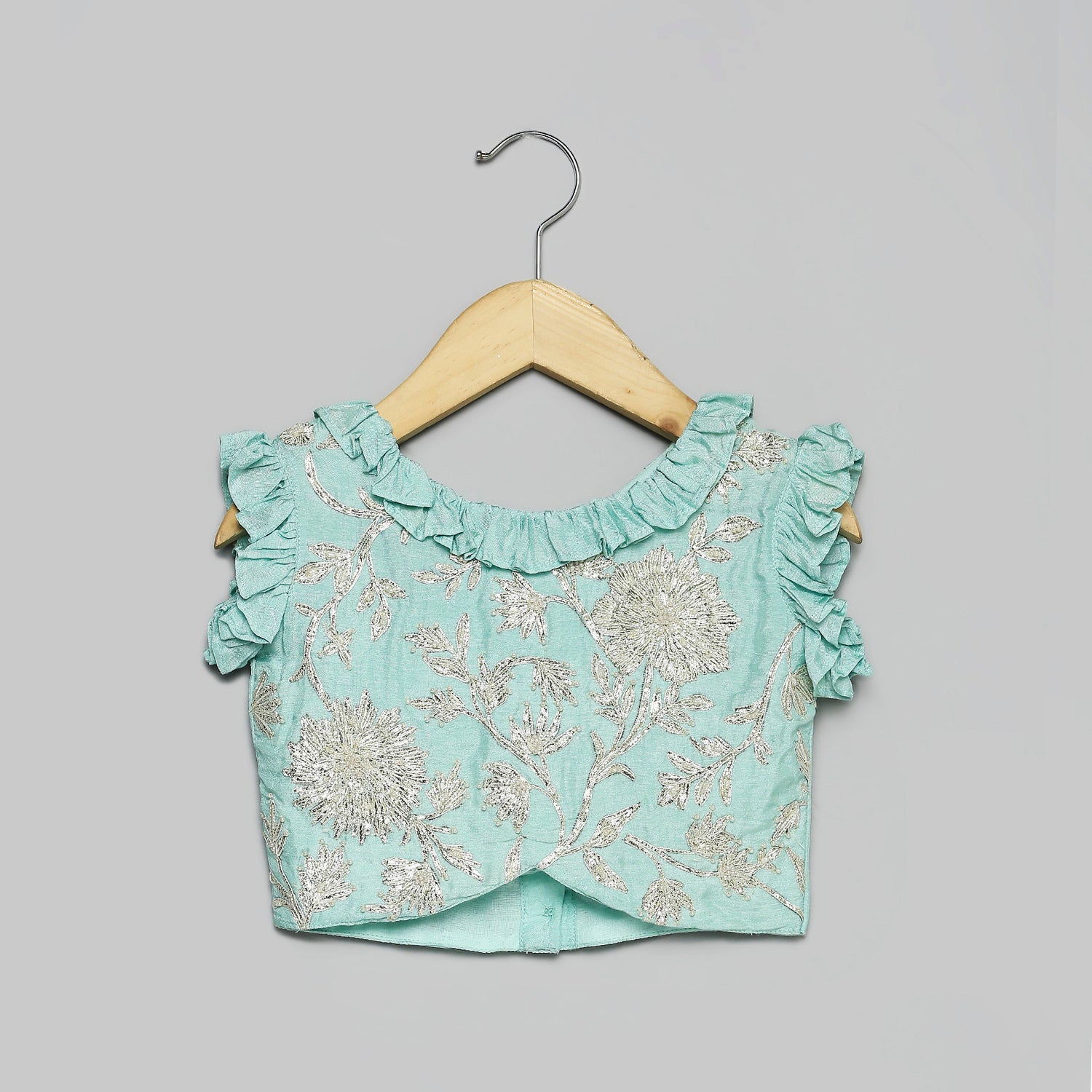 Blue Gota Lace Embroidered Lehenga Choli Set