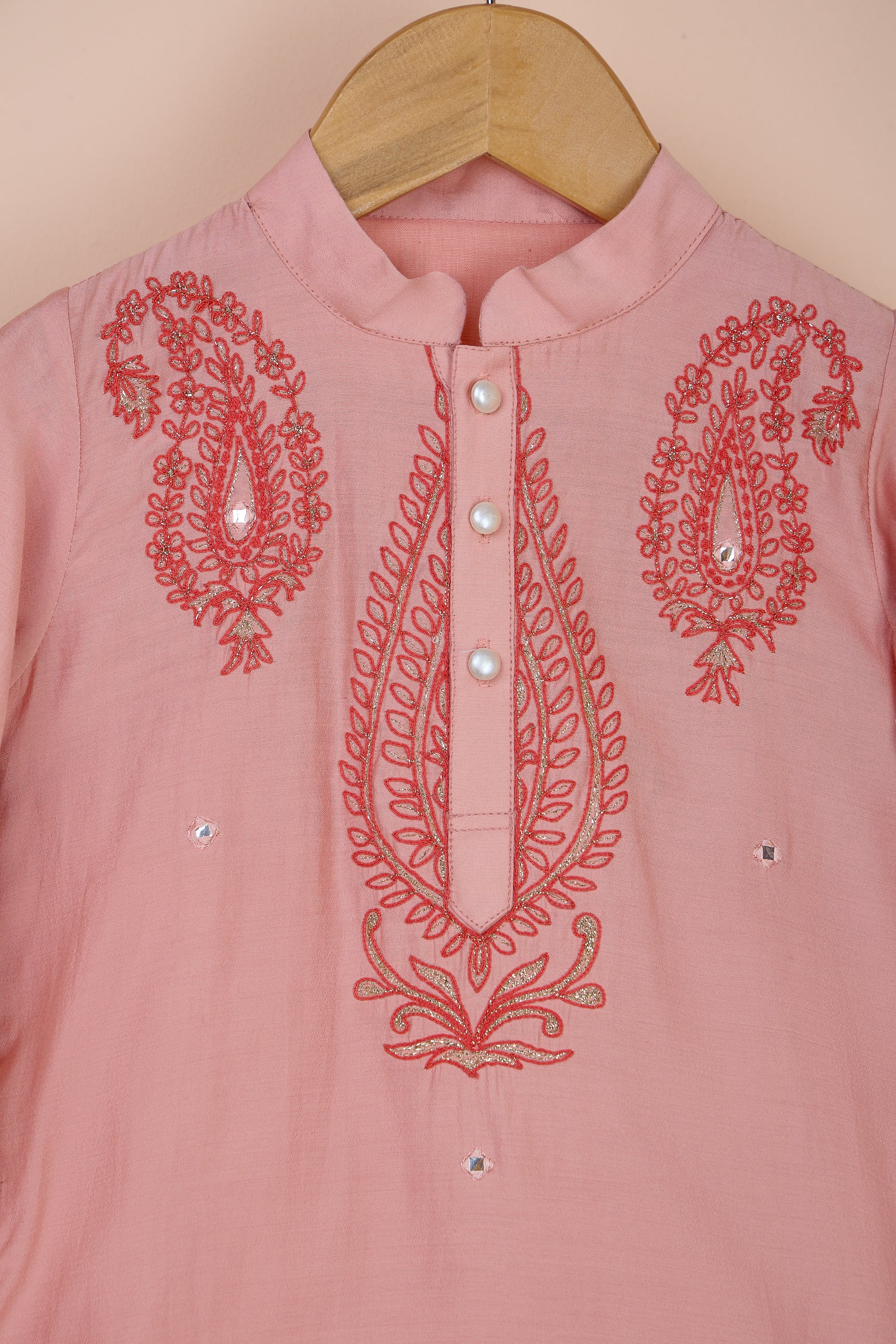 Gulbaag Thread Embroidered Peach Kurta And Pyjama