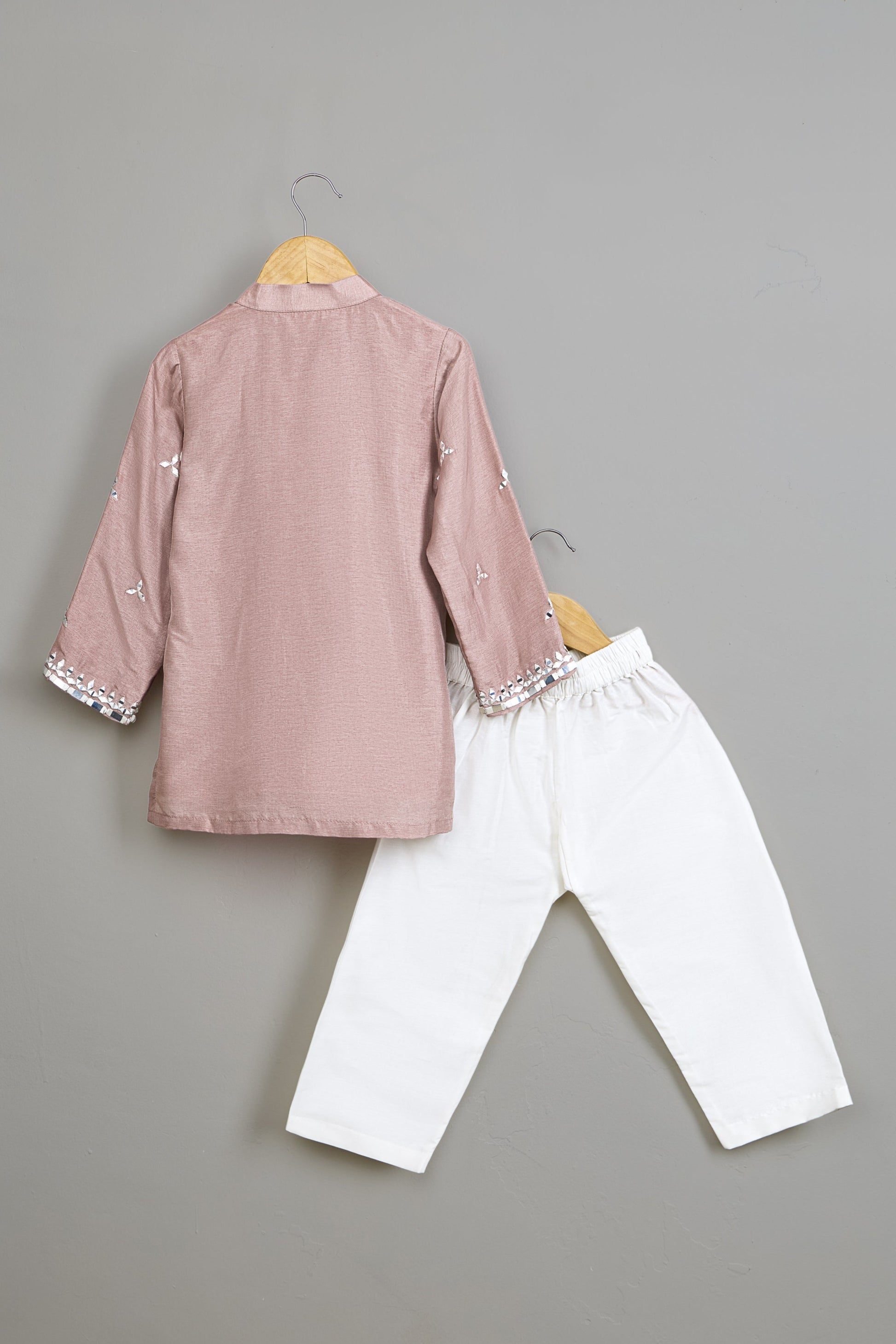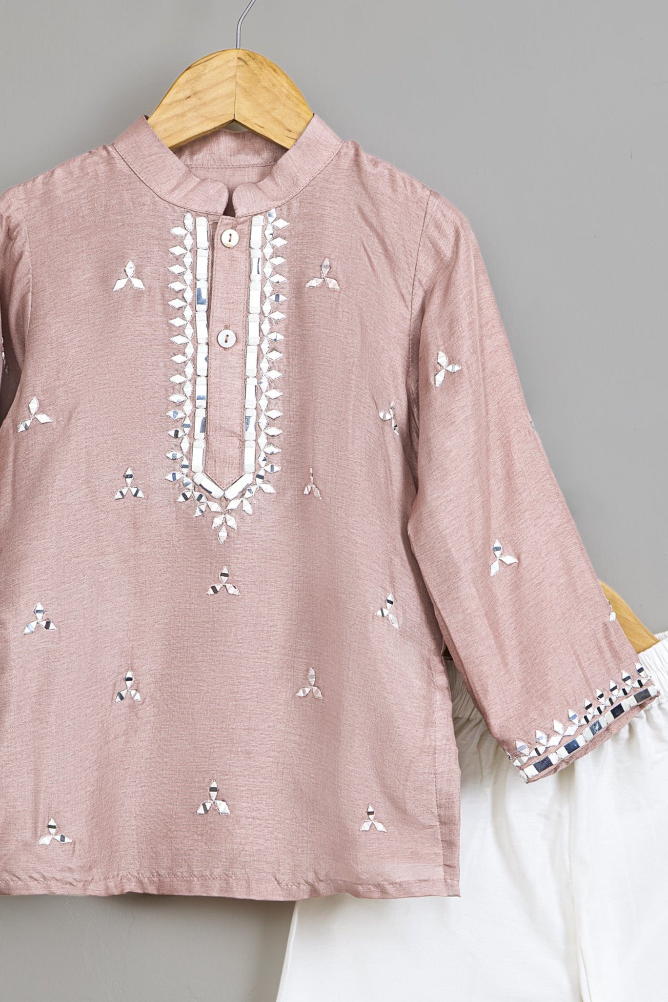 Faux Mirror Embroidered Pink Kurta With Pyjama