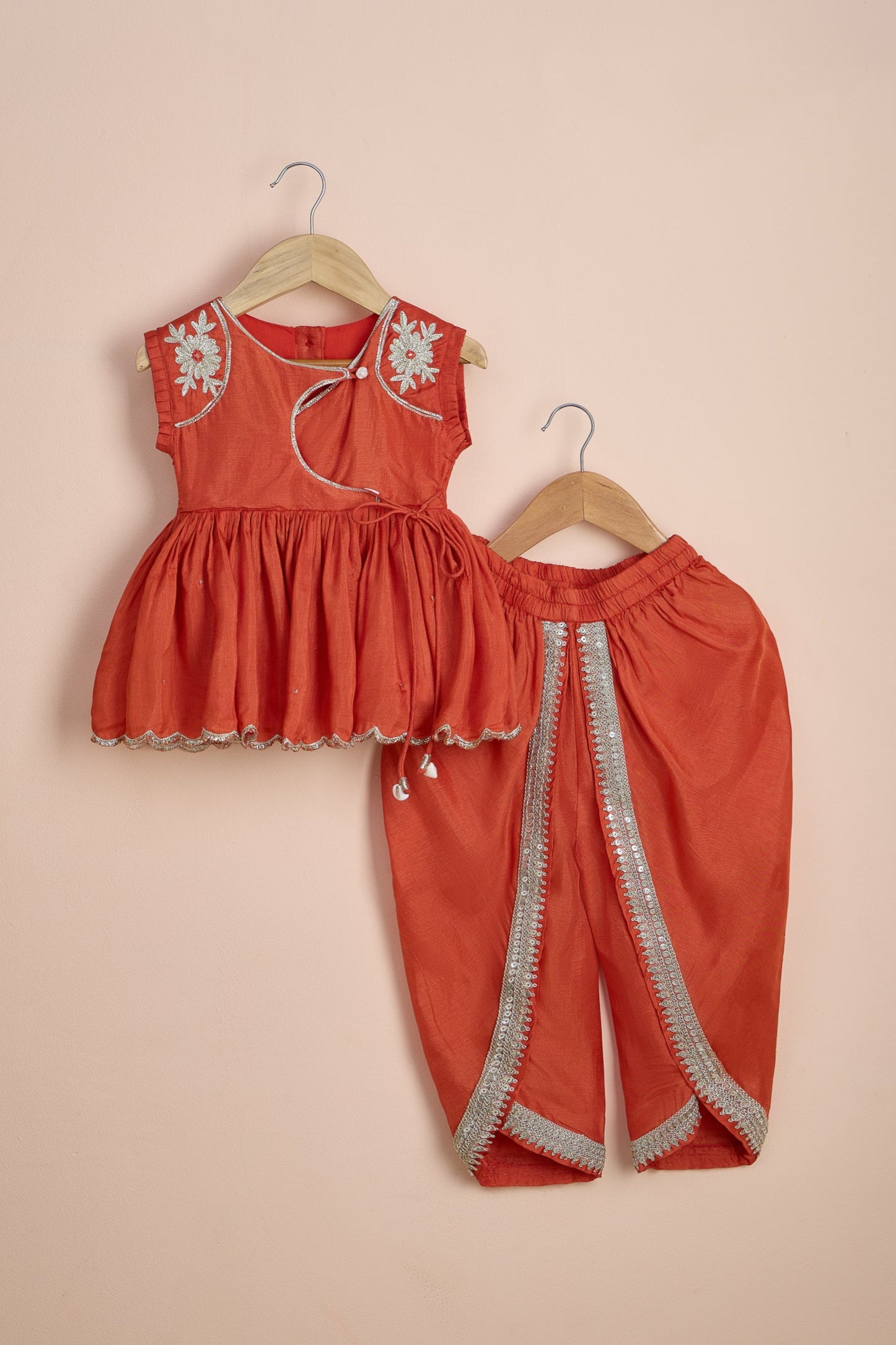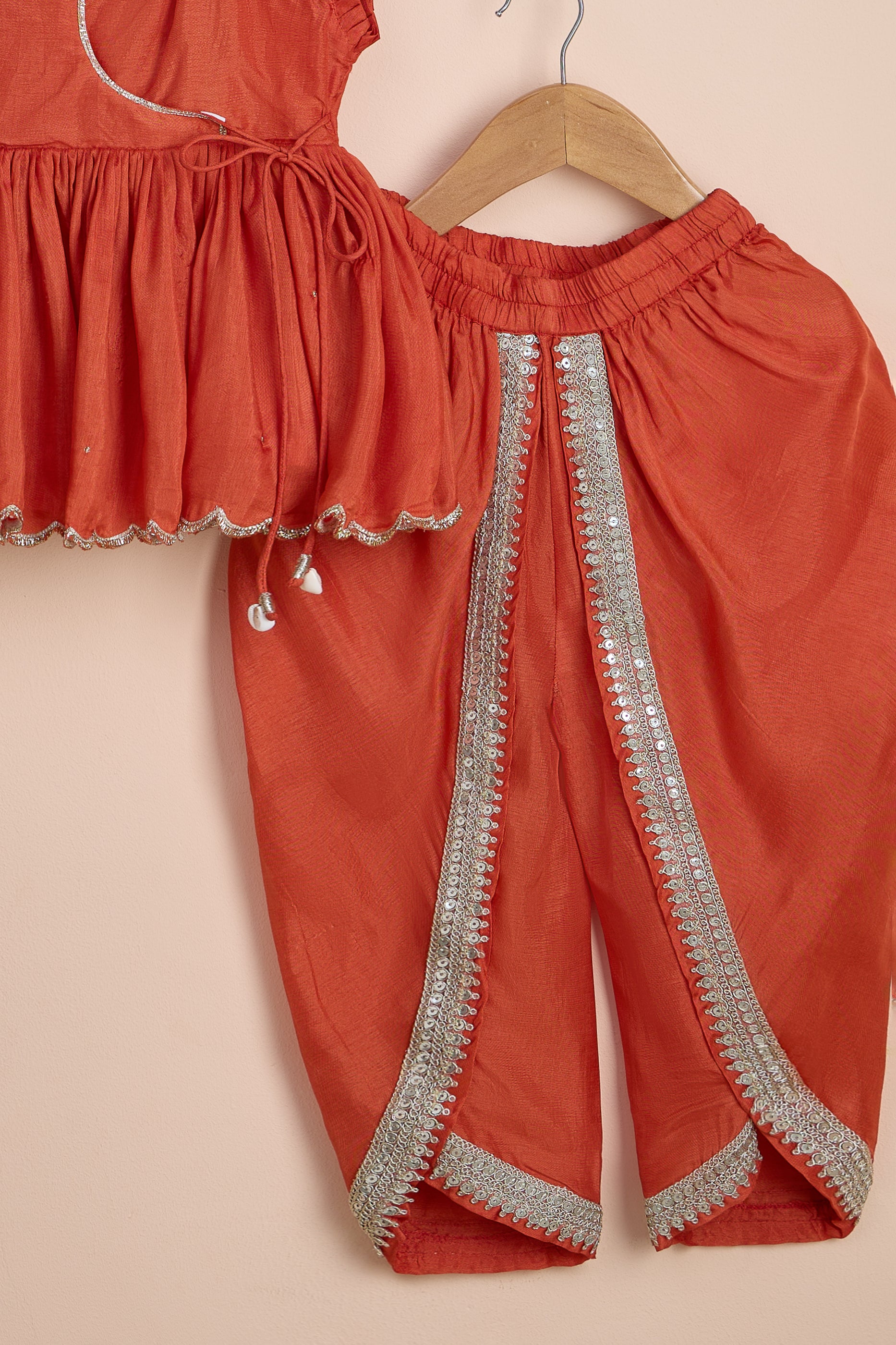 Gangu Rust Scalloped Hem Top And Dhoti Style Pant