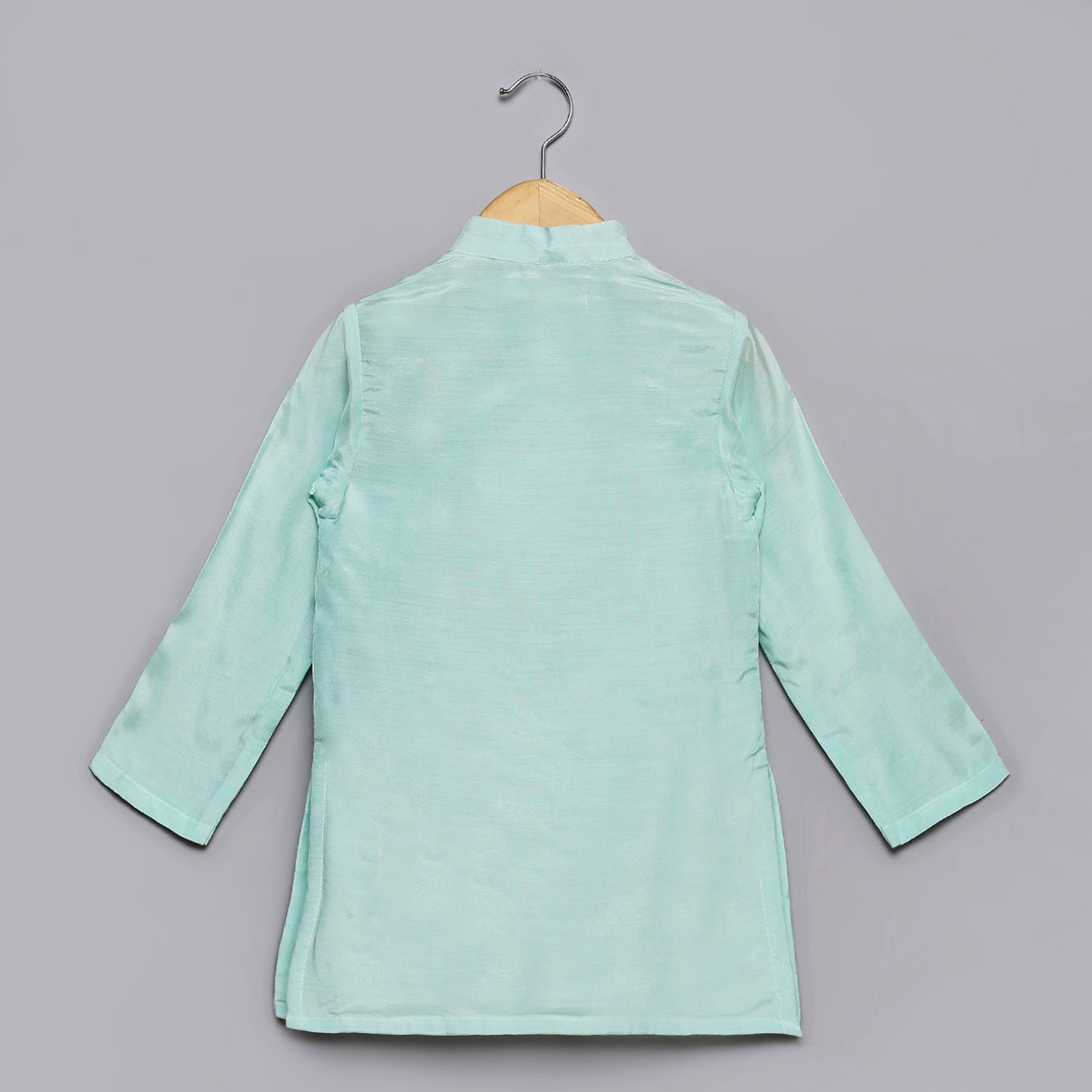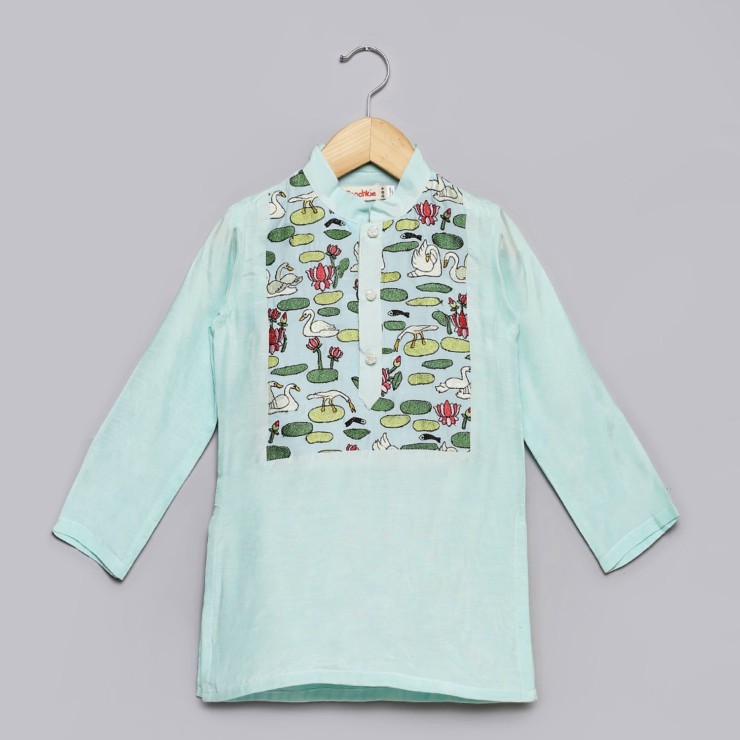 Multi-thread embroidered yoke baby blue kurta & pant set