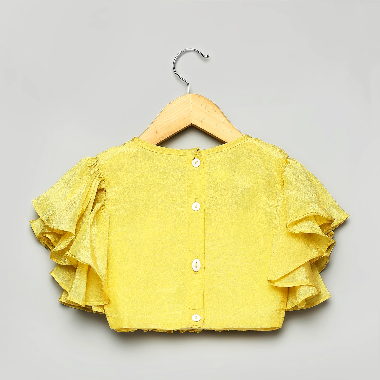-  Patterned front blouse with frilly sleeves