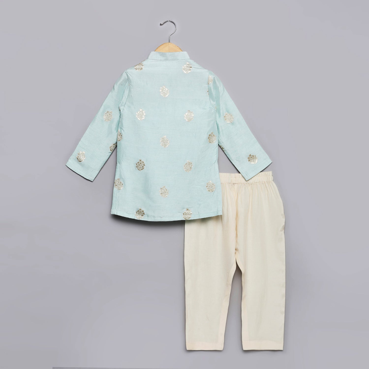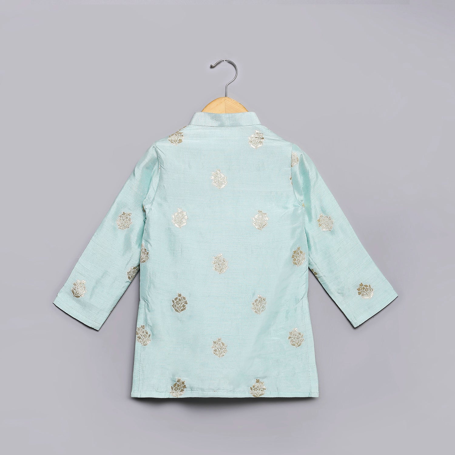 •  Hand work embroidery stand collar kurta in jacquard zari buti fabric