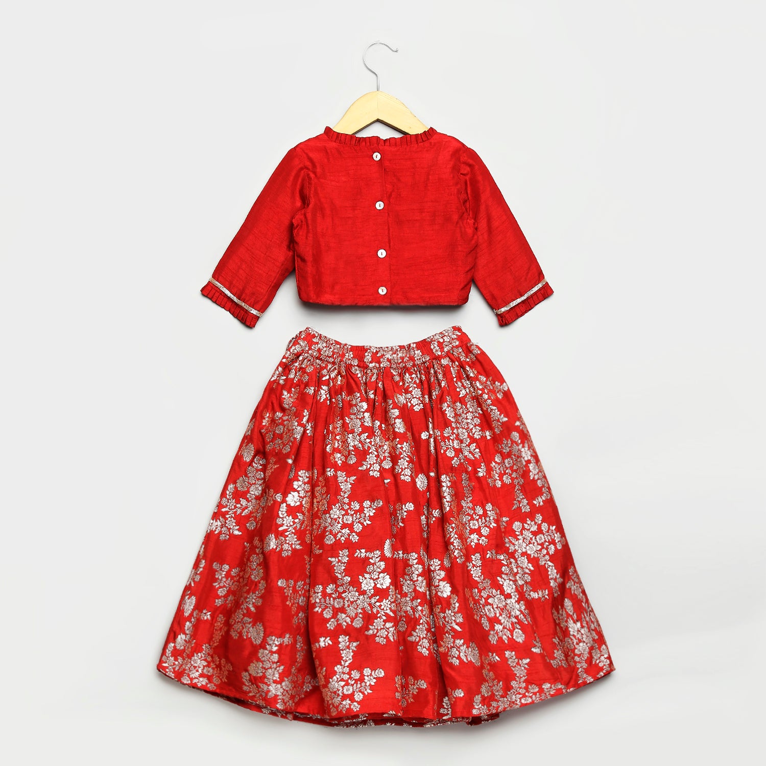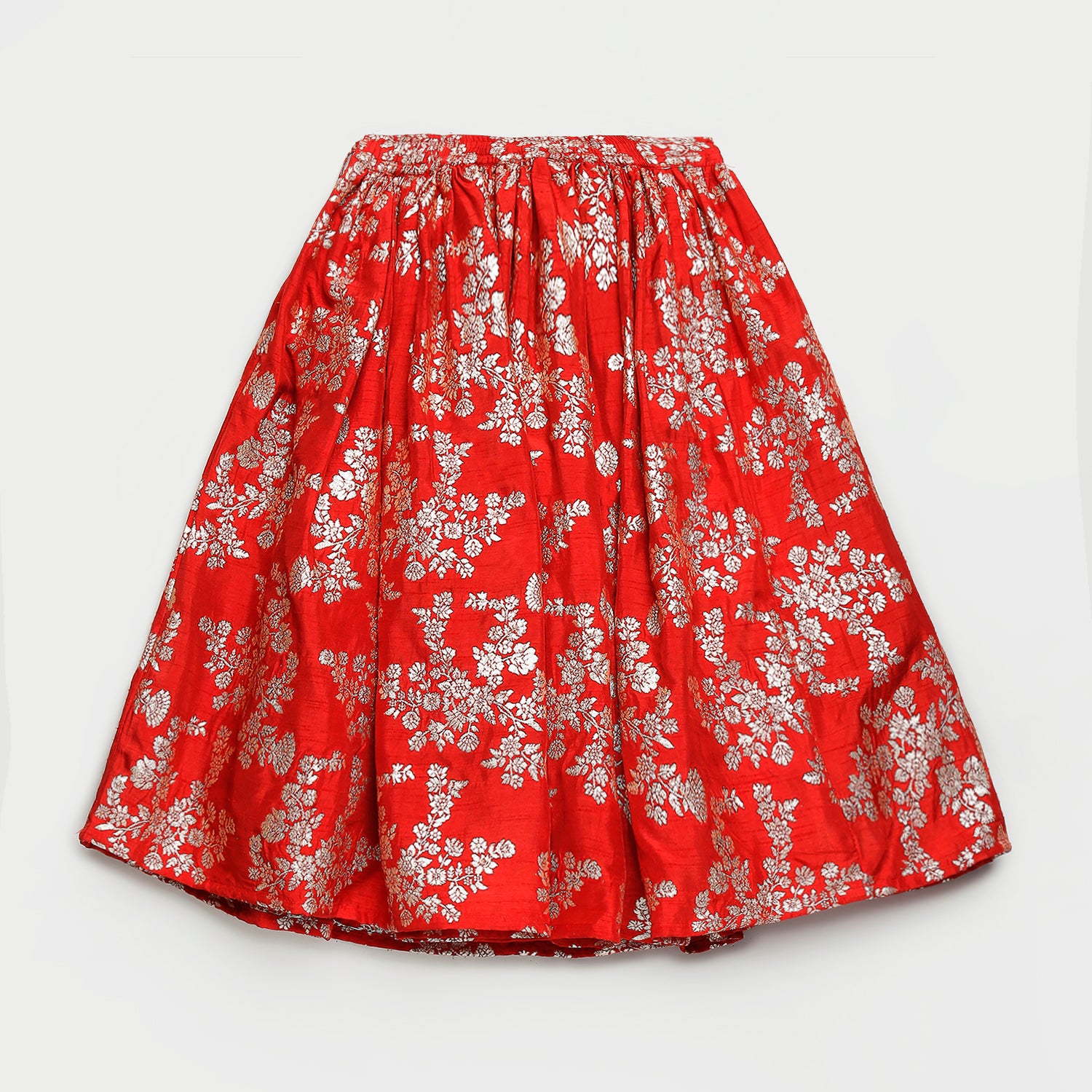 -  Lehenga with elastic at back of waist and adjustable drawstring to tie the knot at