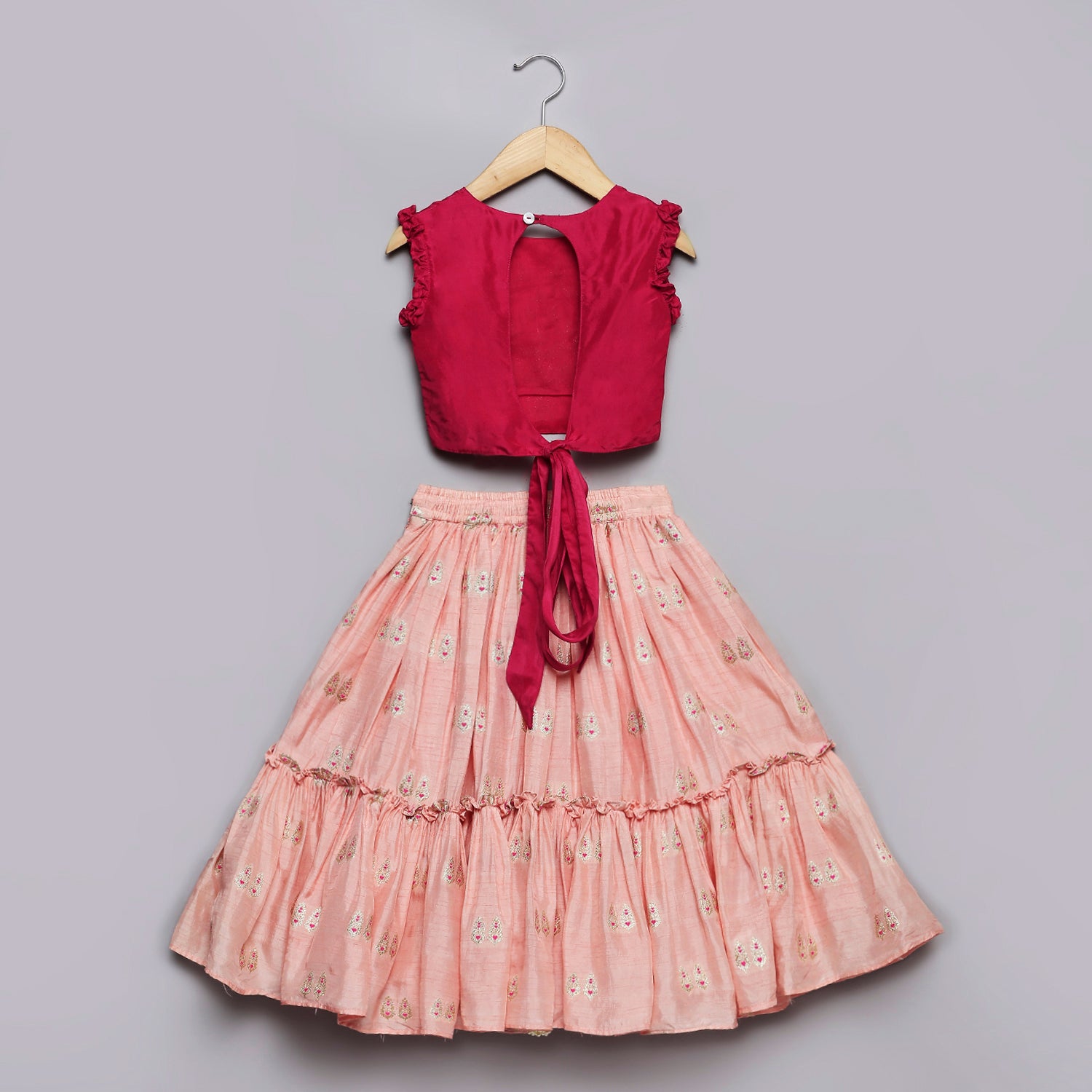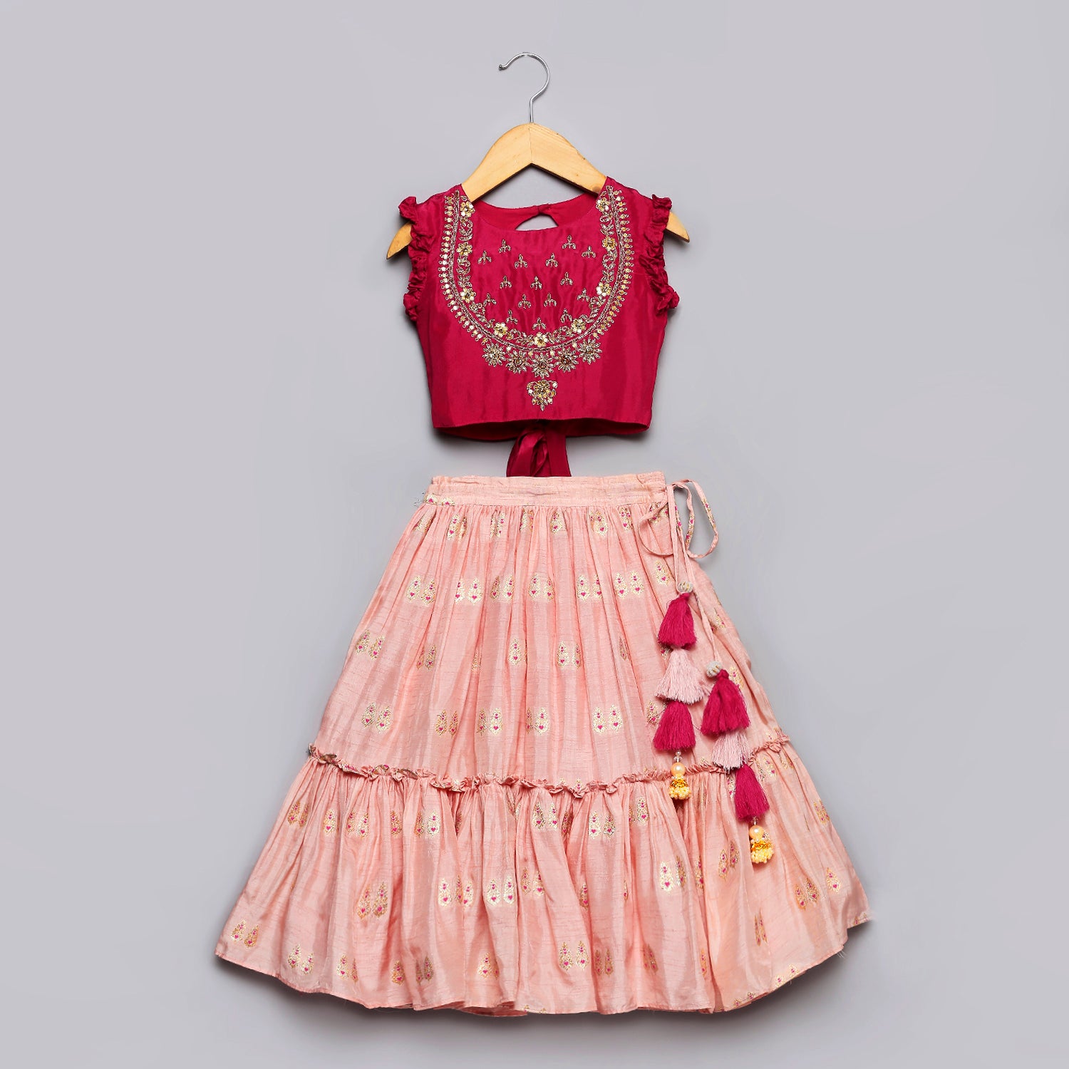 -  Jacquard lehenga with frills and zip at side