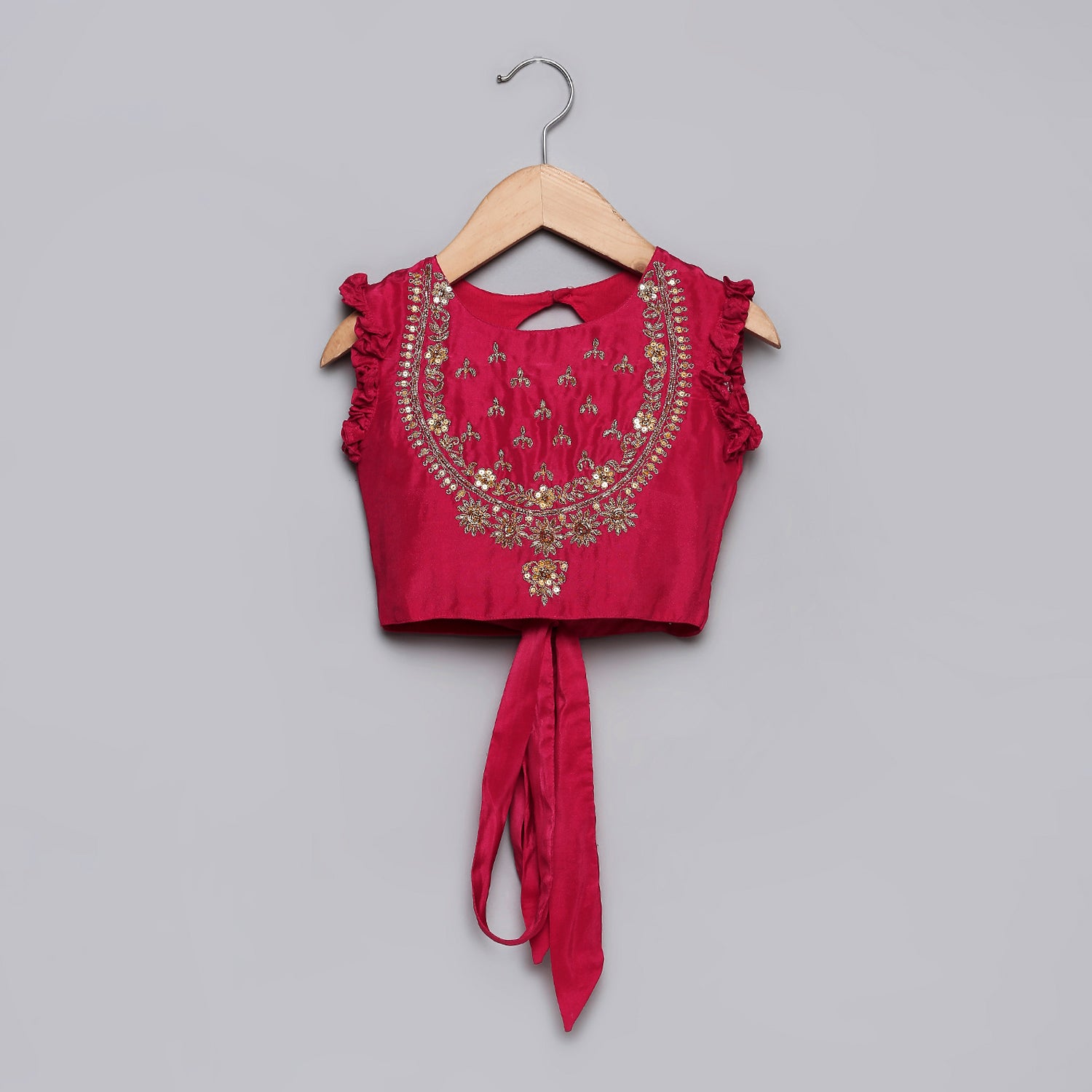 -  Hand embroidered sleeveless top with frills at the armhole