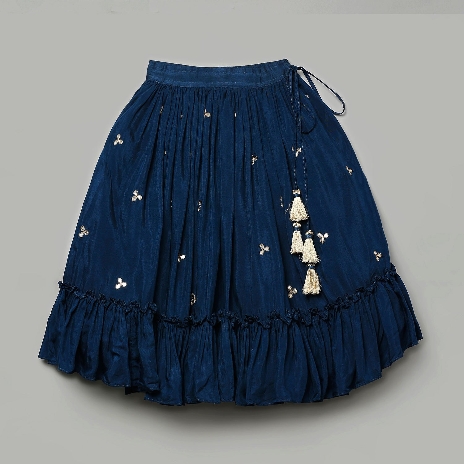 -  Lehenga with elastic at back of waist and adjustable drawstring to tie the knot at